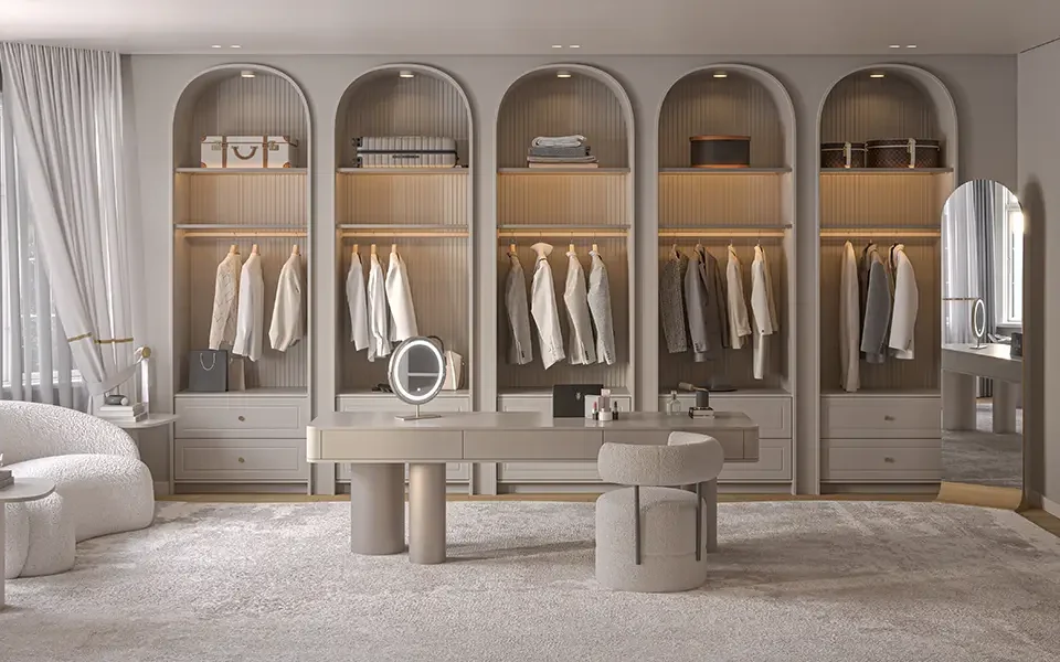 • Nichos curvos que criam uma composição visual mais dinâmica